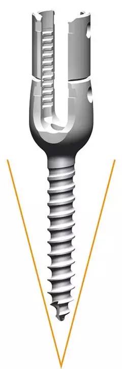 锥度钉体使螺钉更易于旋入,尤其长节段手术时更能省时省力。同时锥度设计抗拔出力强,根部加粗的设计,更大程度避免了断钉的情况发生。