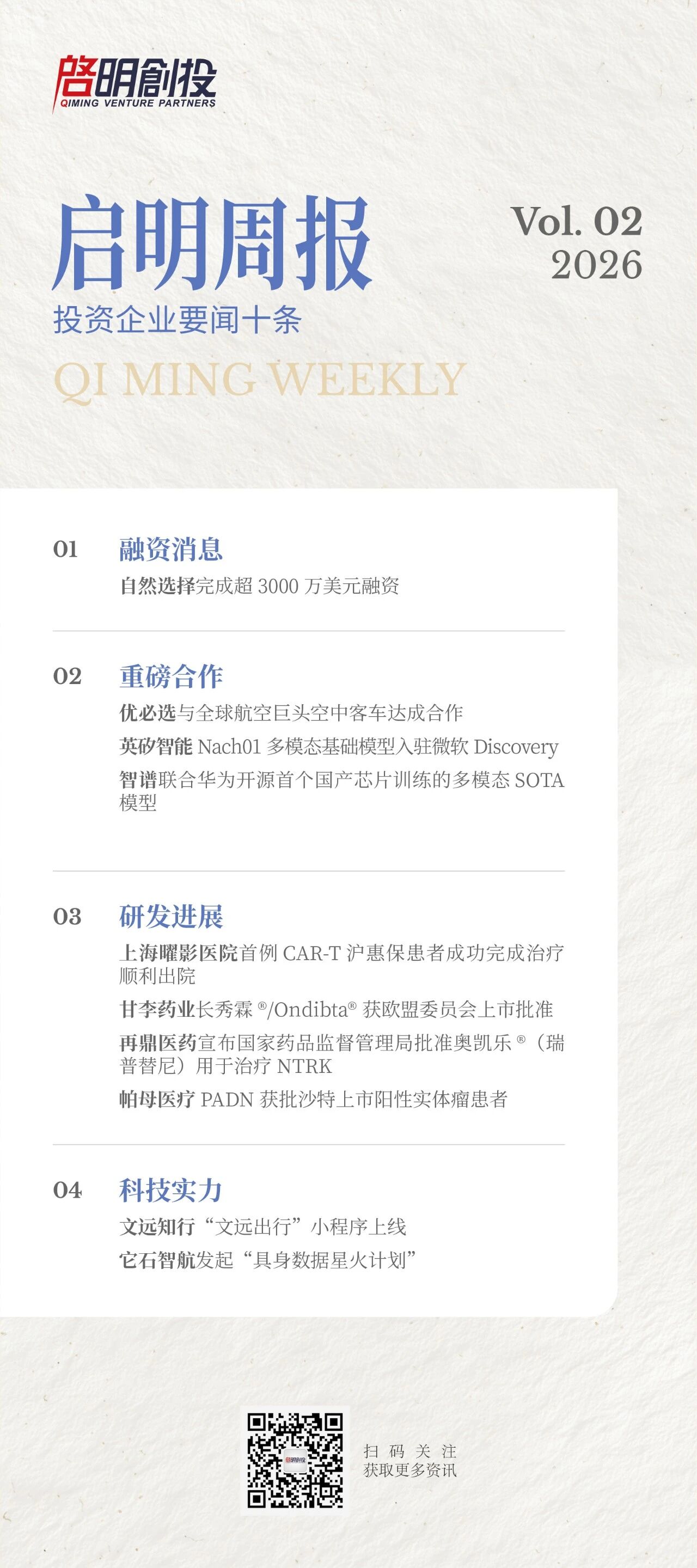 编者按:2026年,《启明周报》升级焕新,每周定期更新,仅精选启明创投投资企业的十条重磅动态,涵盖融资进展与发展突破等。
