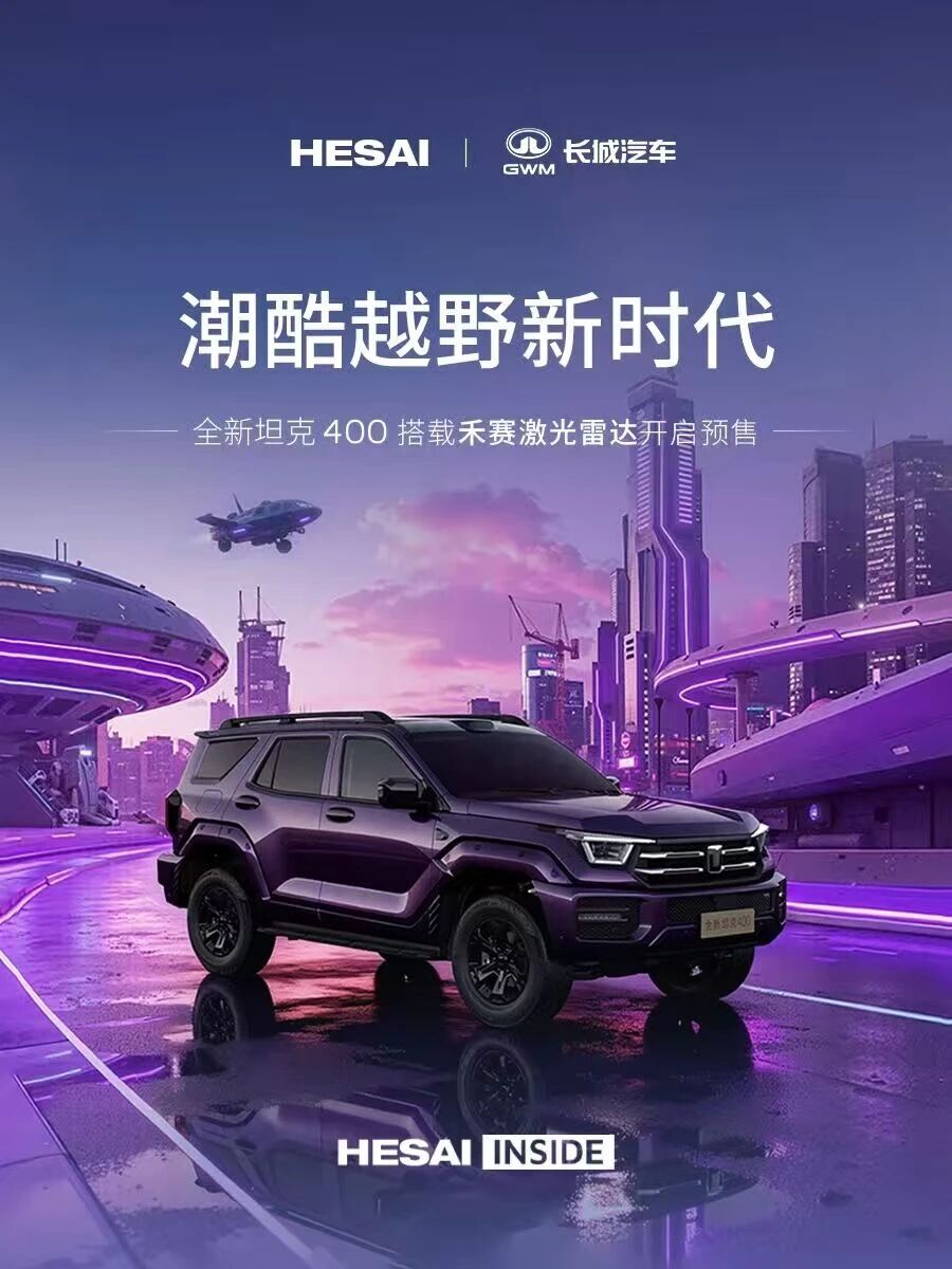 日前,标配启明创投投资企业禾赛科技(NASDAQ:HSAI, 02525.HK)激光雷达的全新坦克400预售发布会成功举行。长城汽车推出全新坦克400 Hi4-Z智享版和全新坦克400 Hi4-T智享版,全新坦克400依托机甲美学、硬核性能、豪华智能三大优势,聚焦打造潮酷越野SUV价值标杆,领衔开启潮酷越野新时代。