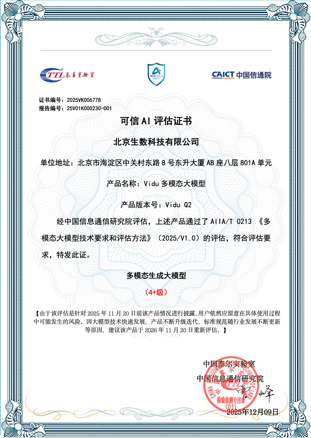 生数科技Vidu Q2多模态大模型获评中国信通院多模态生成领域首个最高等级4+级