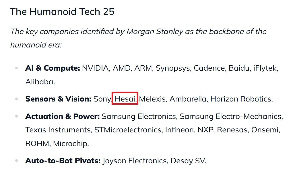 禾赛科技重磅入选大摩机器人年鉴“人形机器人科技25强”