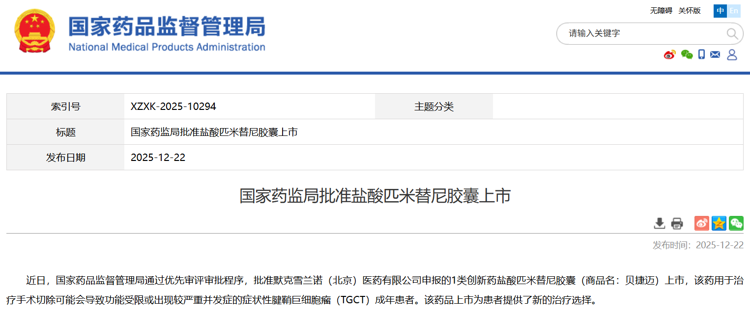和誉医药CSF-1R抑制剂贝捷迈®获NMPA批准