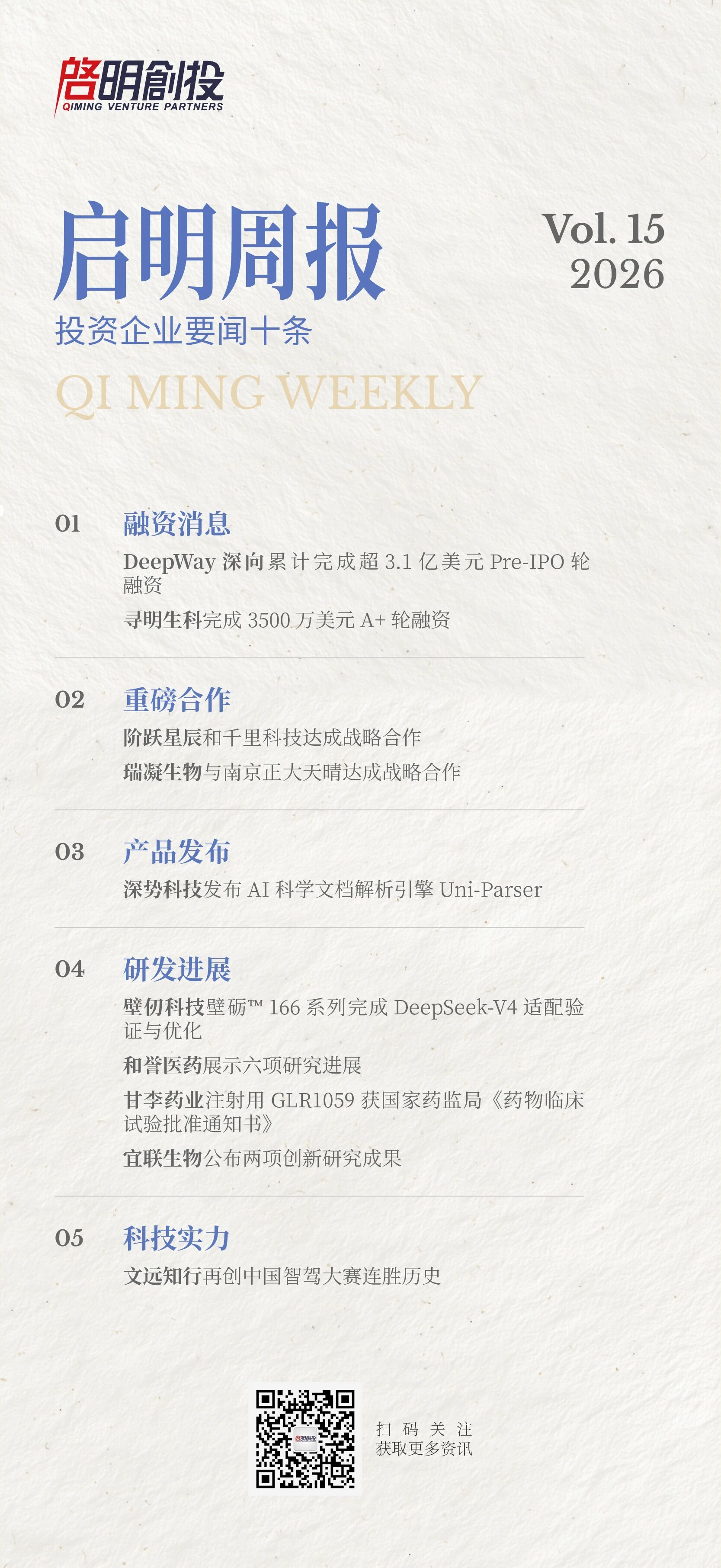编者按:2026年,《启明周报》升级焕新,每周定期更新,仅精选启明创投投资企业的十条重磅动态,涵盖融资进展与发展突破等。