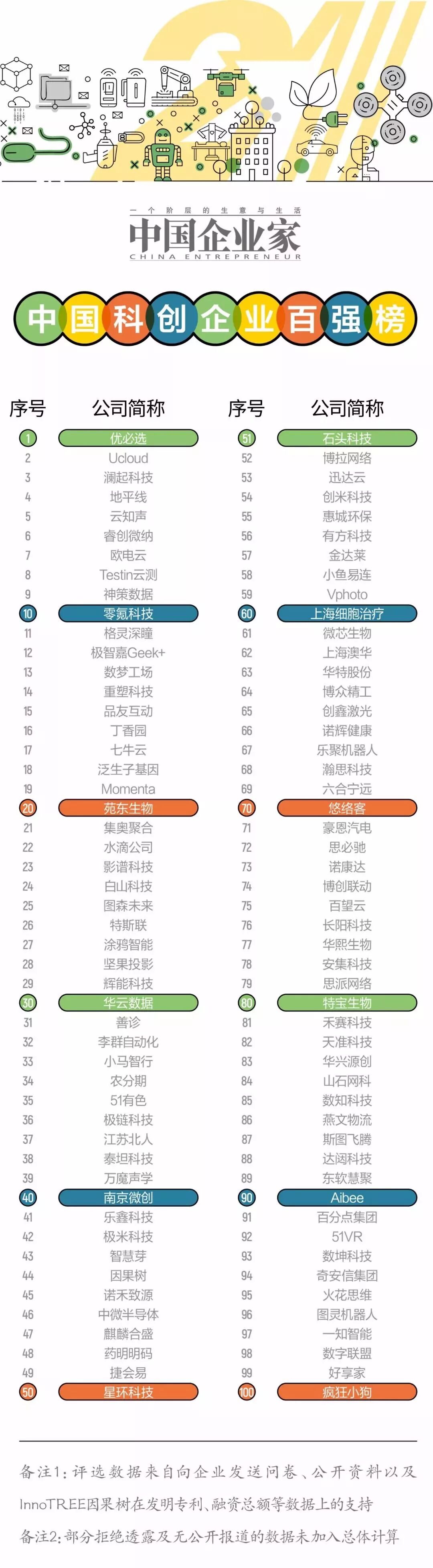 中国科创百强榜的评选标准包括科技实力、投资价值、成长价值三个方面。此次科创企业不乏芯片行业独角兽、航天领域创业公司、以及大数据、云计算公司等。