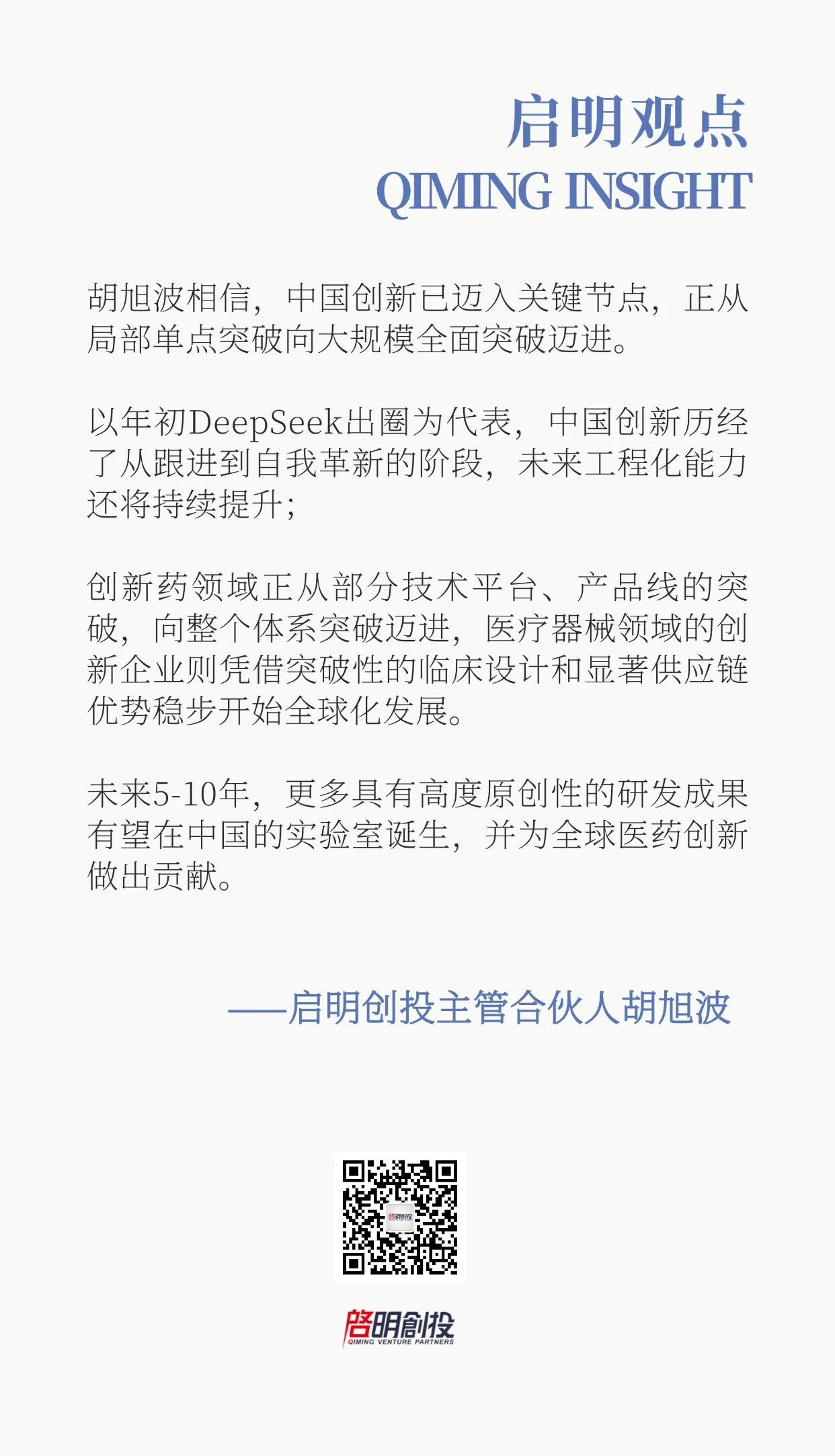 直到2024年上半年,胡旭波的判断逐渐清晰:启明创投所坚持的——推动中国创新服务于全球市场——是可行且值得投入的。尽管当时医疗投资依旧冷清,启明创投看到的是中国创新被低估的历史性机会,胡旭波也在内部多次强调,必须把握时间窗口,果断投资那些产品与团队都令人信服的企业。